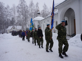 Первым событием памятного дня стала Божественная литургия, на которой ребята приготовились к трудному путешествию причащением Святых Христовых Таин. После литургии помолились, испросив у Бога помощи в пути. Выйдя из храма, слегка подкрепились и заняли свои места в авто. Два часа беспреткновенной езды — и вот мы уже в парке. Из всего многообразия предложенных нам администратором парка вариантов осмотра мы выбрали посещение военно-исторического комплекса «Партизанская деревня» и Музейного комплекса №1, где экспонируется бронетехника времен Великой Отечественной войны.