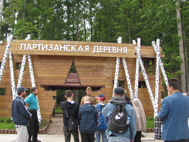 В «Партизанской деревне» нас встретил молодой человек в форме образца военных лет с погонами старшины. Его повествования об операциях «Рельсовая война», «Концерт» и других событиях партизанской войны, рассказ о быте партизан с демонстрацией штабного блиндажа, узла связи, жилой землянки и др. позволили, если и не ощутить себя настоящими партизанами, то тесно соприкоснуться с их подвигом. В заключение нам представилась возможность насытиться настоящим партизанским обедом.